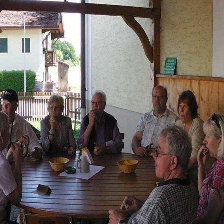 Bei Bilderbuch-Wetter ging unsere Ausfahrt in die bayerischen Alpen. Der Weg führte uns zu der ersten Privatbrauerei Schönram, wo uns deren Braumeister von der Kunst des Bierbrauens erzählte. Von der Qualität ihrer Arbeit konnten wir uns in einem zweiten Frühstück überzeugen.